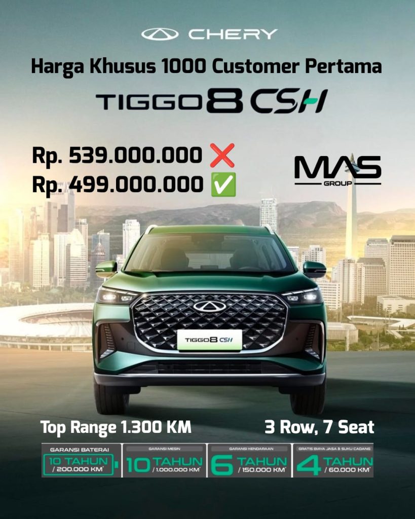 EFISIENSI & PERFORMA MAKSIMAL Rasakan performa terbaik dari TIGGO 8 CSH, mobil hybrid paling efisien layaknya mobil listrik. Dengan konsumsi bahan bakar 76 km/l, mesin…